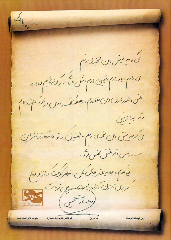 می گویند نیستی و من لبخند می زنم با اطمینان که تو ماندگار ترین اثر این سرزمینی ، تو عشق محض بودنی .